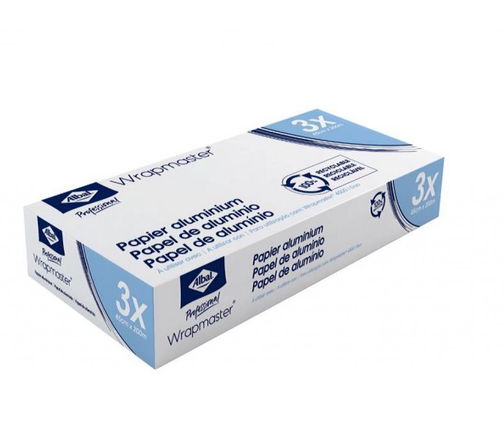 El Papel de Aluminio Wrapmaster 3000 de Albal es apto para forrar, asar, cocinar a la parrilla o al horno y cubrir alimentos.