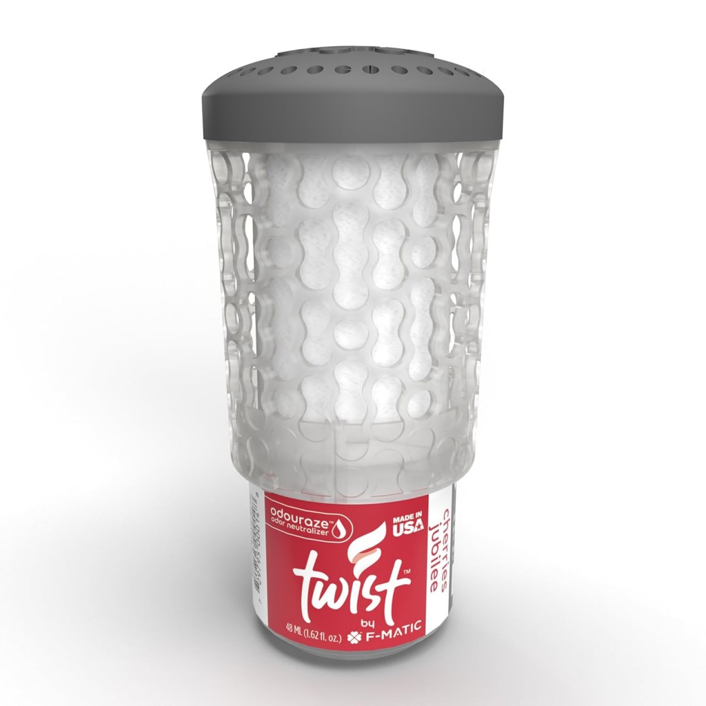 Una rica mezcla de cerezas rojas ácidas, grosellas negras y ciruelas jugosas, mezcladas con miel y almendras, crea un deleite de repostería para los sentidos. Intensamente dulce para disimular los olores más difíciles. Su duración es superior a los 60 días. Se puede usar con o sin dispensador ya que funciona sin necesidad pilas ni electicidad.